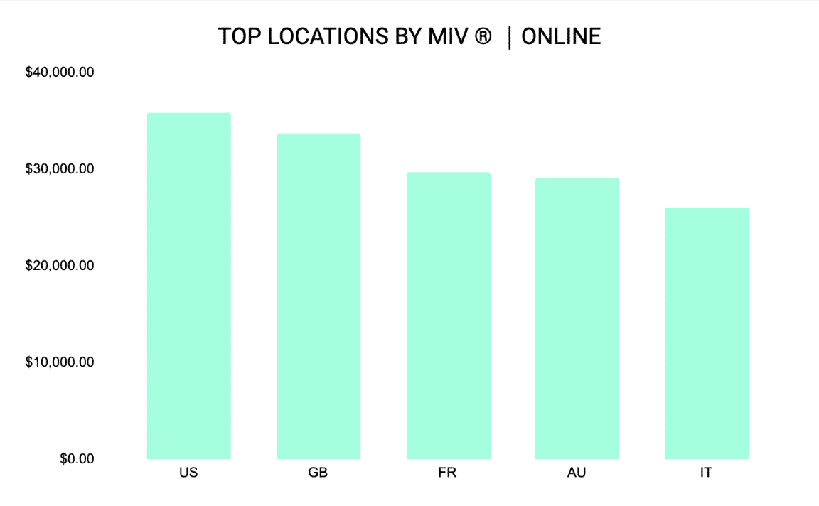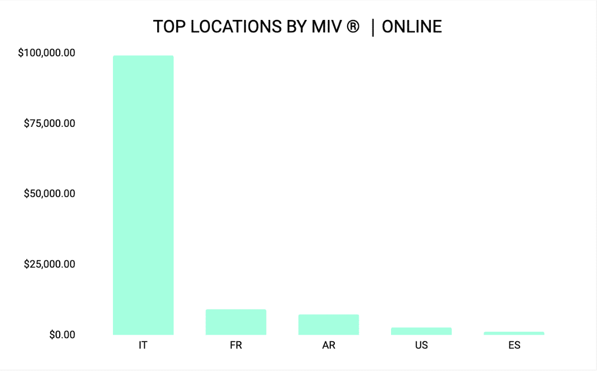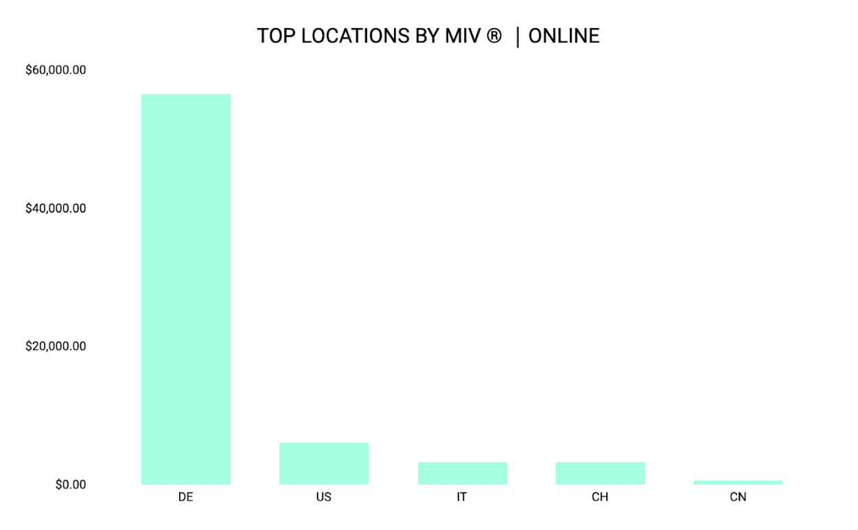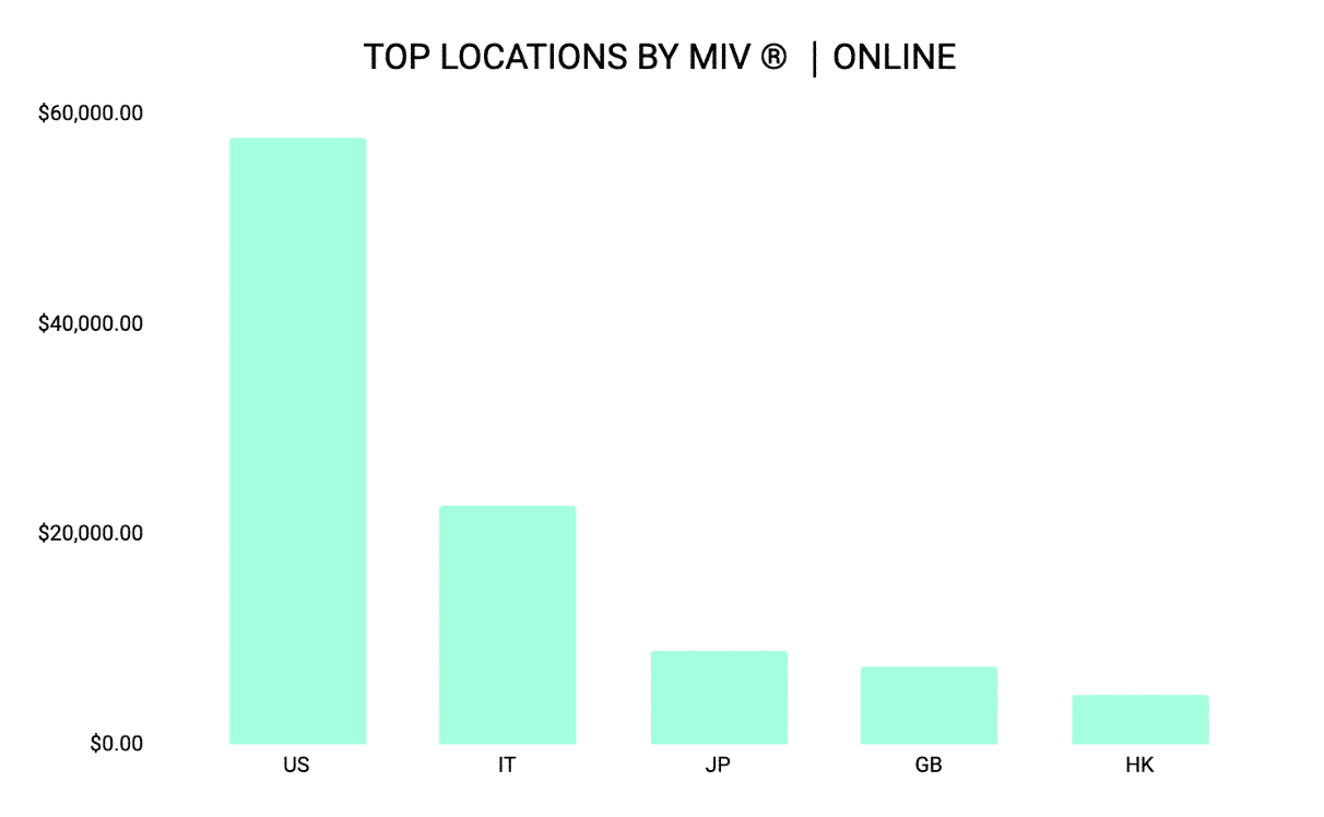 The EMEA region, particularly Italy, Spain, and France, contributed $141K to its total MIV®, while WeChat and Weibo delivered the highest global MIV® among Chinese social media channels at $25.7K and $25.1K, respectively. Instagram, though not as high-performing, is still a vital platform to target a younger and more design-savvy audience.