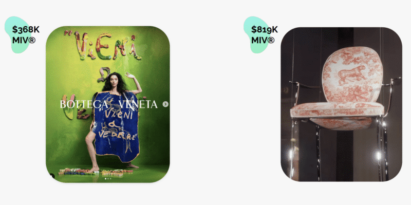 Philippe Starck, on the other hand, joined forces with renowned luxury powerhouse Dior to create iconic chairs, some featuring light aluminum and sleek silhouettes. One, ‘Miss Dior’, was showcased at the event and online, showing Starck’s combining of simplicity with excellence. The partnership proved dividends for the brand and designer, as multiple placements and visibility from the event drove $819K MIV®.