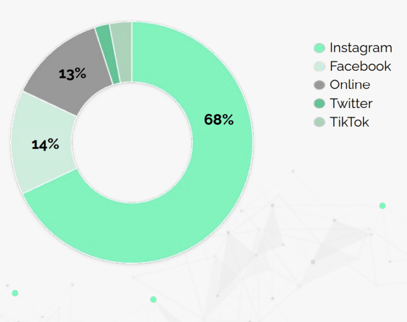 The social media channel outperformed other platforms by a landslide. 68% of placements were posted on Instagram and the platform was utilized to share brand’s collections, which ultimately allowed them to gain visibility and reach.