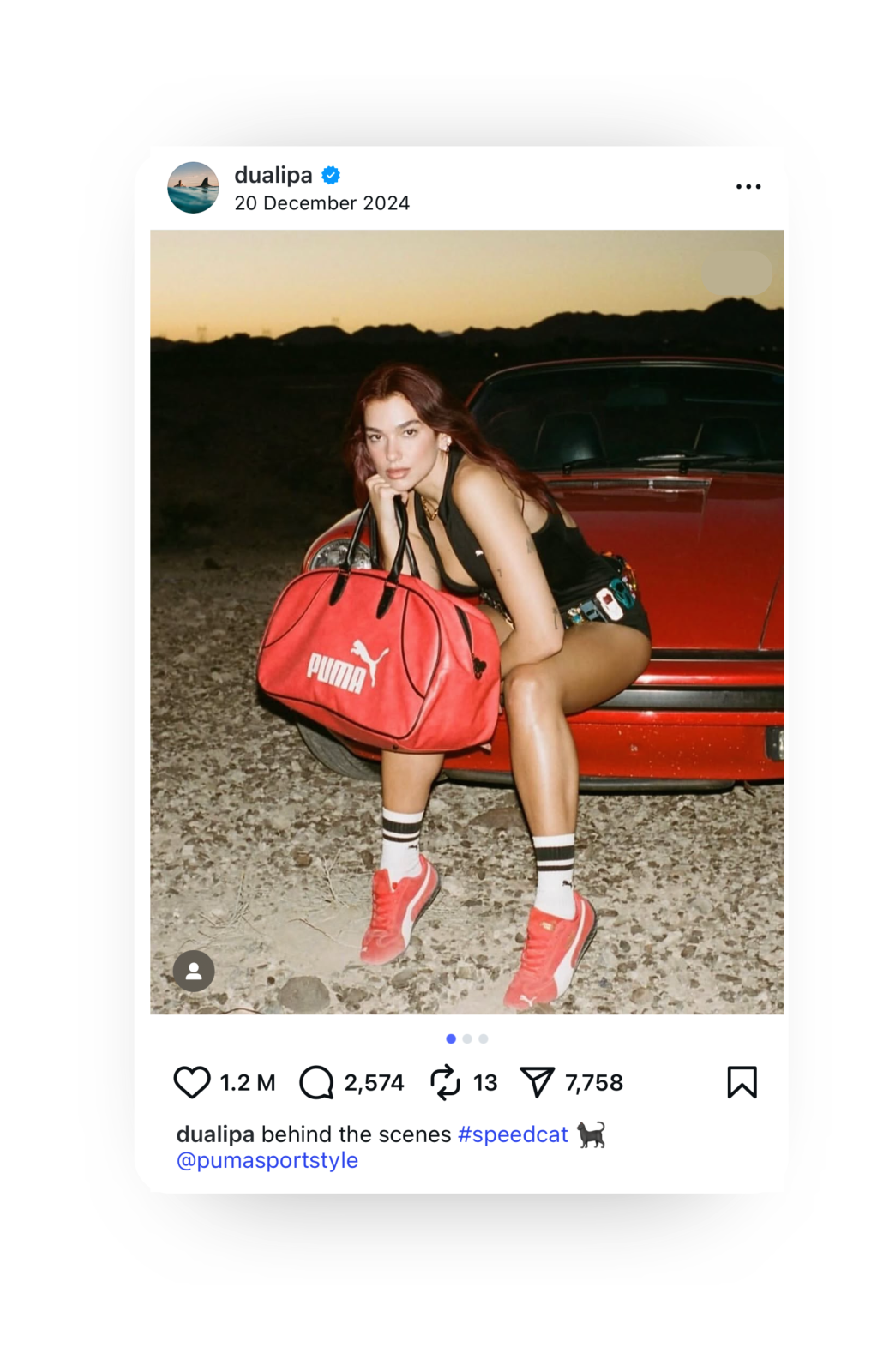 Pour relancer son modèle Speedcat, initialement sorti en 1999, Puma a choisi deux ambassadrices majeures : Dua Lipa et Rosé (Blackpink). Le lancement, célébré sur le Strip de Las Vegas lors d’un événement exclusif, a déjà généré 3,4 M$ en MIV® depuis son dévoilement.