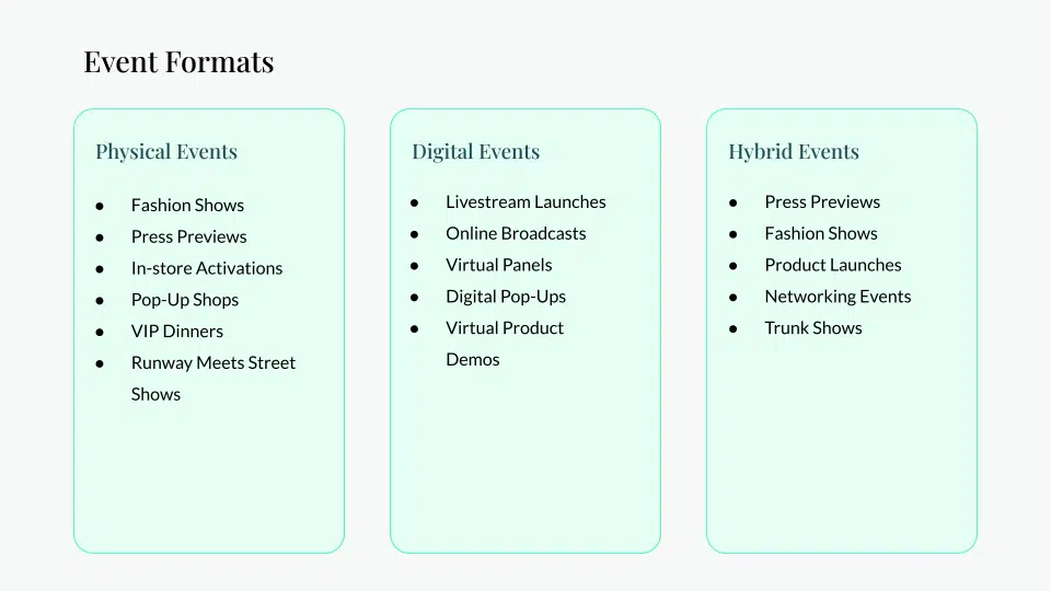 Exclusivity still matters, but today’s events are expected to amplify their reach across regions, channels and audiences. Physical, digital and hybrid formats achieve this but each bring their own complexities—from on-site logistics to livestream access and global guest coordination. Let’s explore how to make them happen with successful event planning.