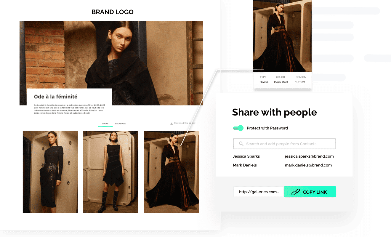 Disposer d’un outil de gestion des assets digitaux adapté aux besoins du secteur de la mode et du lifestyle implique de disposer de fonctionnalités telles que des galeries. Ces showrooms en ligne vous permettront de présenter vos collections de façon inspirante sur la sphère digitale en maximisant les possibilités pour les destinataires car ils pourront télécharger des images en HD, les enregistrer pour plus tard ou même demander des échantillons, et tout cela sur une même plateforme.