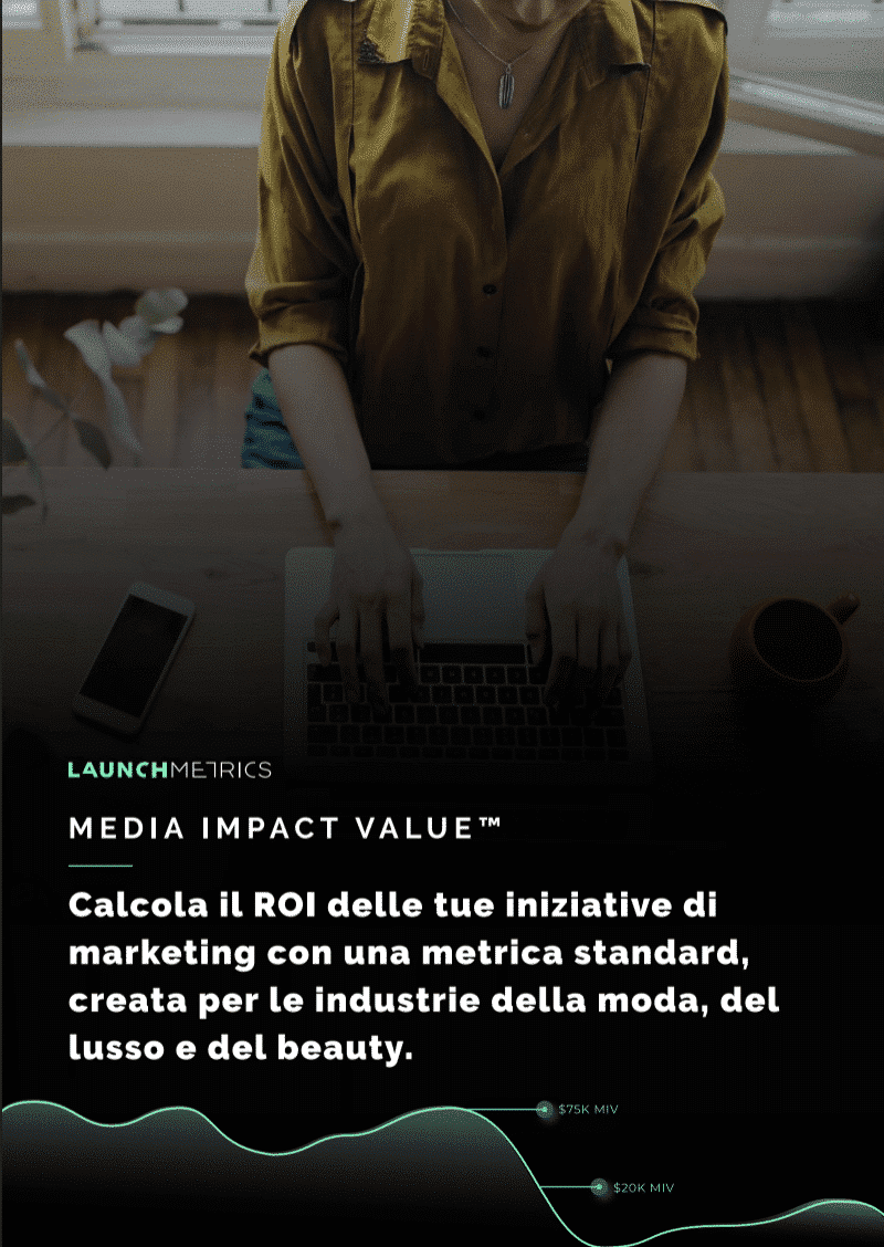 Ad oggi, i brand che operano nei settori della moda, del lusso e del beauty sono consapevoli che se vogliono raggiungere i consumatori in diversi punti di contatto, devono adottare un approccio di marketing omnichannel e, più in generale, entrare in sintonia con il loro pubblico. Inoltre, nel bel mezzo di una pandemia globale, dimostrare il valore di queste iniziative è più cruciale che mai. Determinare il ROI di una campagna di influencer marketing rispetto a una menzione sulla stampa, per esempio, può fornire informazioni essenziali sul successo di una campagna di marketing. I marchi possono farlo utilizzando una metrica standard, costruita per le industrie della moda, del lusso e del beauty: il Media Impact Value ™️ o MIV®. Abbiamo preparato una vera e propria guida alMedia Impact Value ™️ per spiegarvi come.