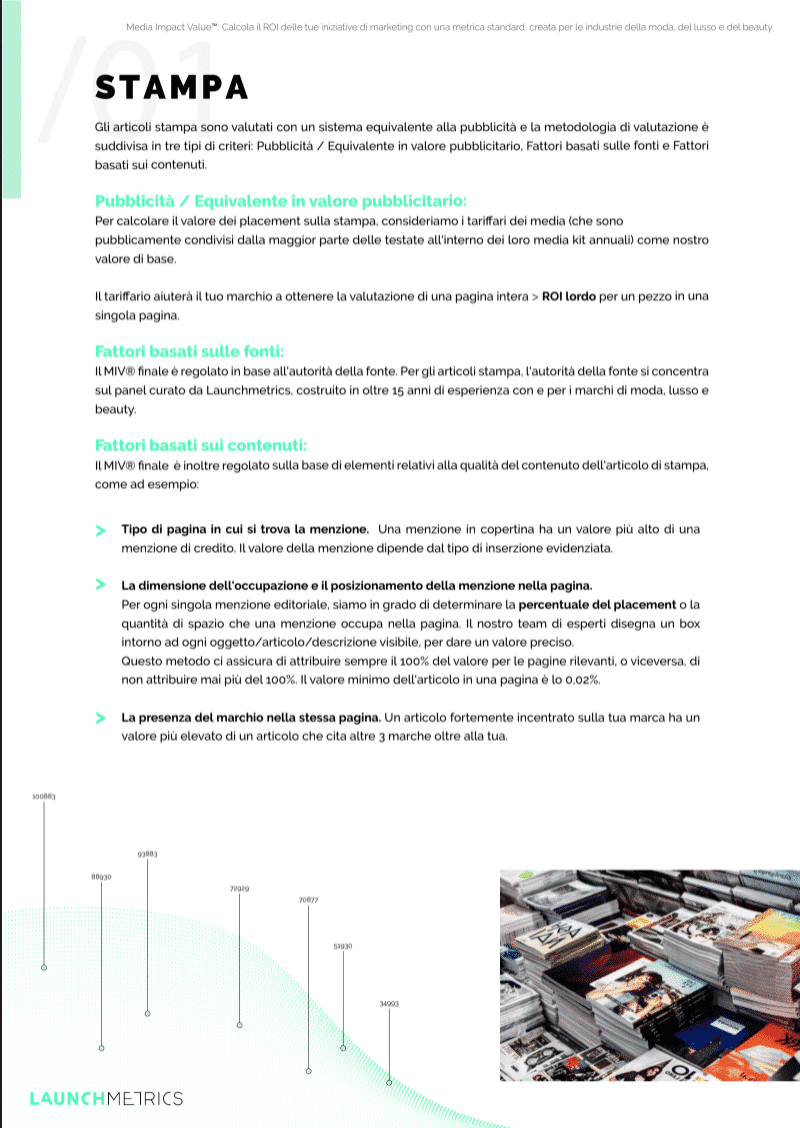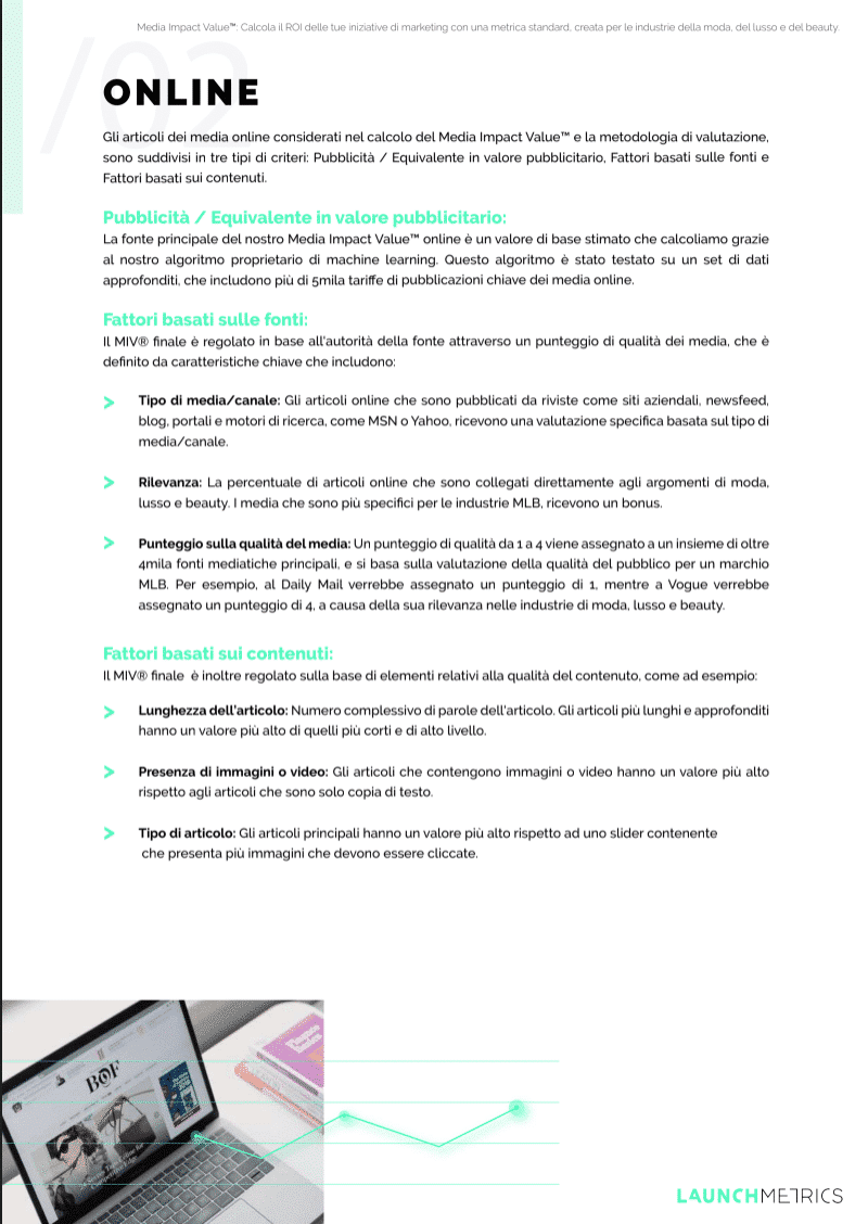 - I fattori di misurazione presi in considerazione per calcolare la metrica del MIV® su stampa, online e social