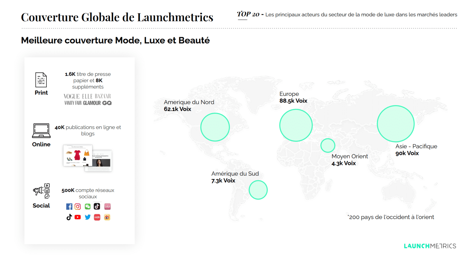 Dans cette deuxième édition de notre Top 20 Power Players Report, vous trouverez une nouvelle analyse trimestrielle sur les succès et la croissance des principales marques de mode de luxe sur trois marchés clés. Alors que l’Europe et les États-Unis essaient lentement de revenir à la normale après la pandémie, la Chine a commencé à connaître une reprise régulière et devrait devenir le plus grand marché du luxe au monde d’ici 2025. En effet, la Chine est la seule région de cet espace à avoir connu une croissance dès 2019 (+ 45%), ce qui a conduit les marques de mode de luxe européennes et américaines à accroître leurs investissements dans des campagnes marketing destinées aux consommateurs chinois. Ce rapport trimestriel examinera le classement des 20 premières marques de mode de luxe par MIV® et la façon dont leur impact varie aux États-Unis, en Europe et en Chine.