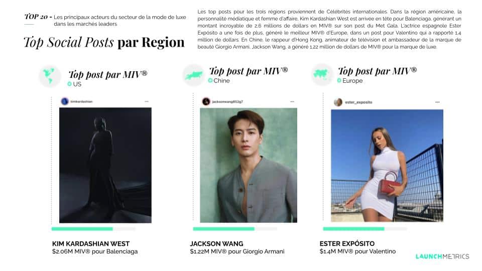 - Les chaînes plus performantes en matière de stratégies marketing dans le secteur de la mode de luxe au cours du trimestre.