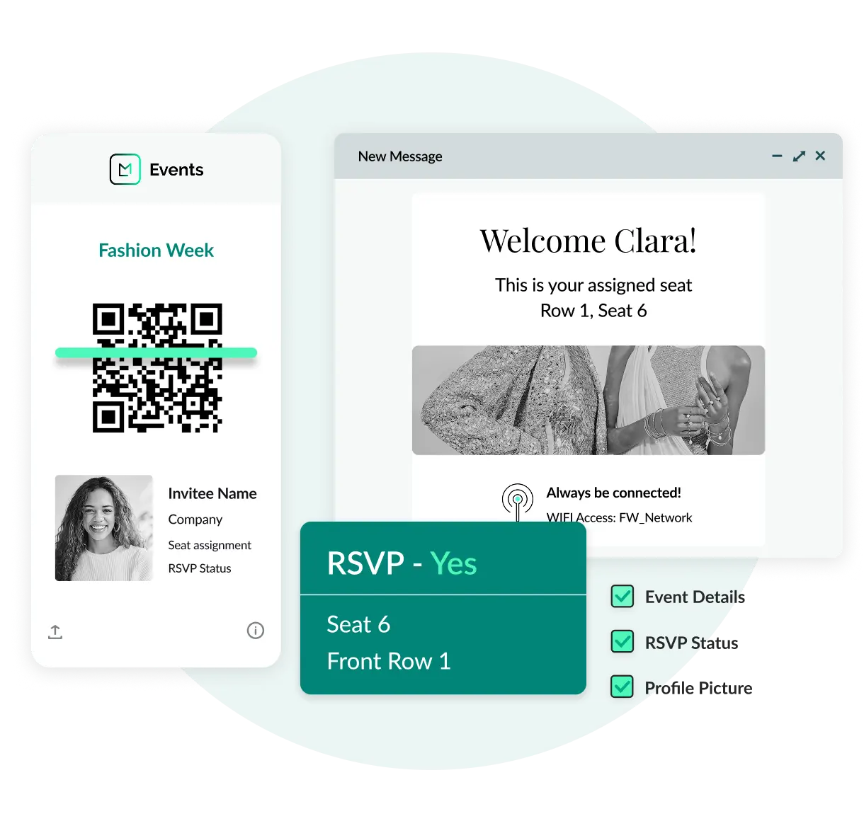 Design and send custom invites, manage your guest list with real time RSVP updates and ensure complete event oversight and data consistency with full CRM integration. - Streamline Guest Communication