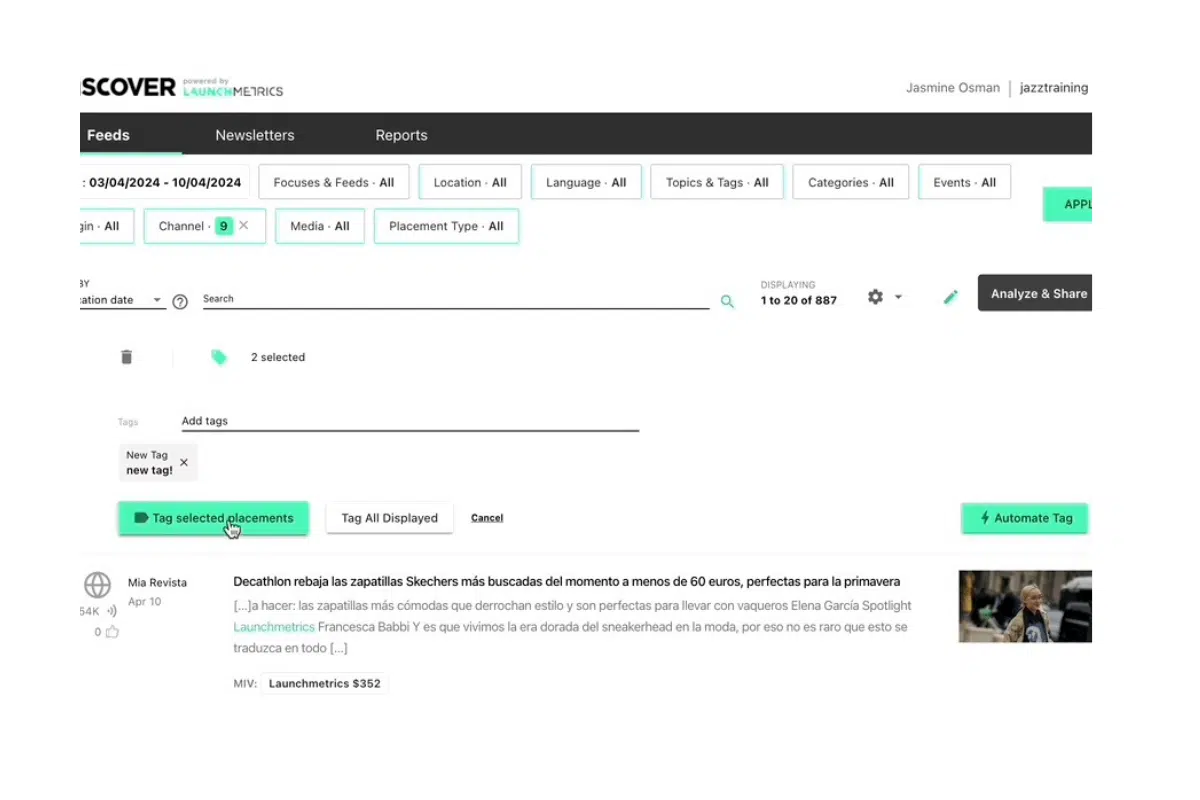 Sitting within the broader Topics and Tags framework in Discover, it gives teams a faster, cleaner and more strategic way to organize and report on MIV. Whether you’re measuring the influence of a brand ambassador, a creative director or a key media partner, this feature helps you build a more tailored view of their contribution across print, online and social channels.