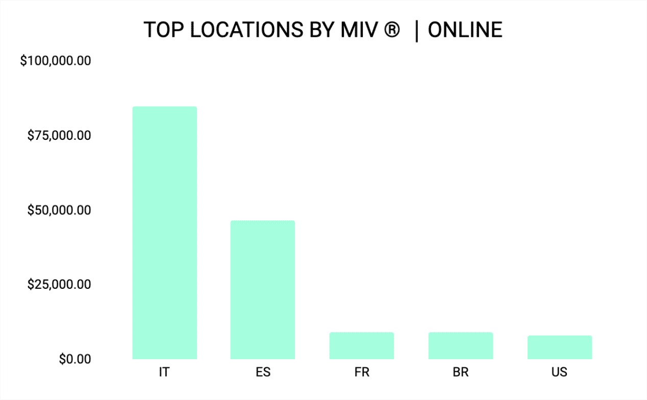 The EMEA region, particularly Italy, Spain, and France, contributed $141K to its total MIV®, while WeChat and Weibo delivered the highest global MIV® among Chinese social media channels at $25.7K and $25.1K, respectively. Instagram, though not as high-performing, is still a vital platform to target a younger and more design-savvy audience.