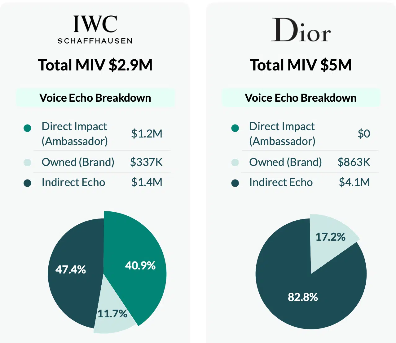 For example, when an ambassador posts about a brand on their Instagram account, it generates direct impact. Meanwhile, a Celebrity or Influencer wearing the same brand on a red carpet can generate impact through other Voices posting about it—even if they don’t post about it themselves. This is what we call Indirect Echo.